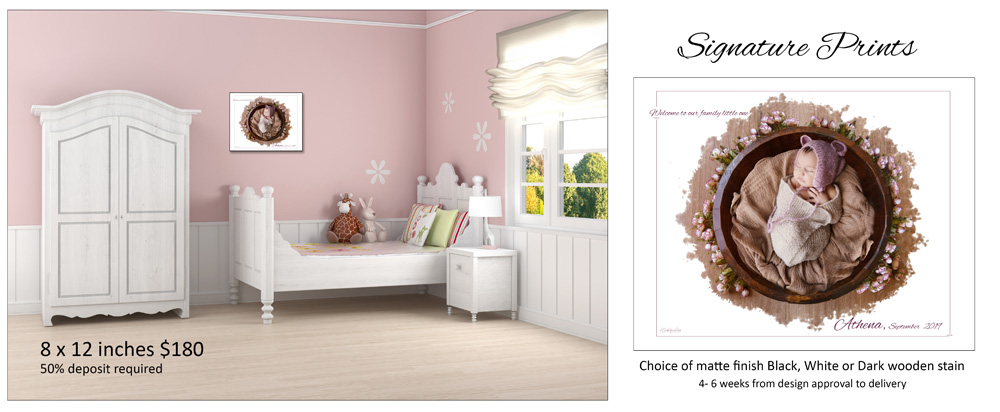 Step two: Melissa will design your image, including your chosen text, for your approval, and frame colour selection.