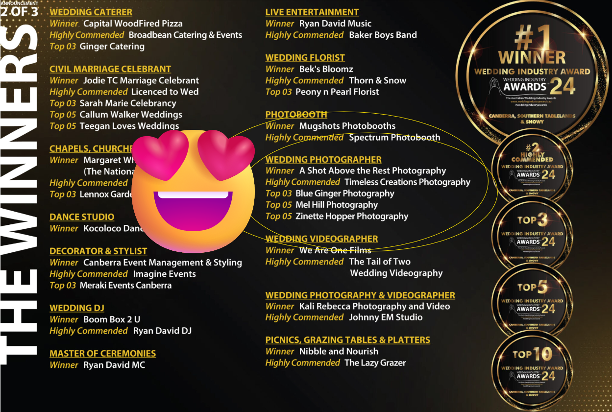 AUSTRALIA’S MOST PREFERRED AND TRUSTED WEDDING INDUSTRY AWARDS BY INDUSTRY. OFFERING AUSTRALIA’S #1, GENUINE REGIONAL WEDDING INDUSTRY AWARDS PROGRAM, DELIVERING THE MOST COMPREHENSIVE, CREDIBLE AND TRANSPARENT WEDDING INDUSTRY AWARDS.